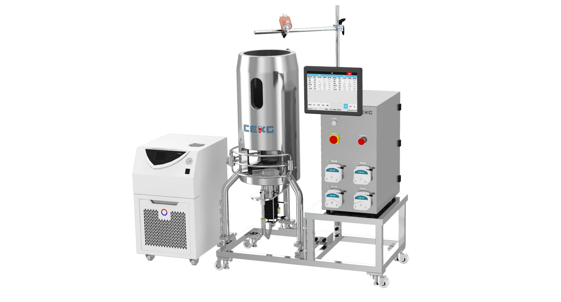 水夹套式温度控制,PID自动控制,Pt100传感器,控制精度:±0.5℃,